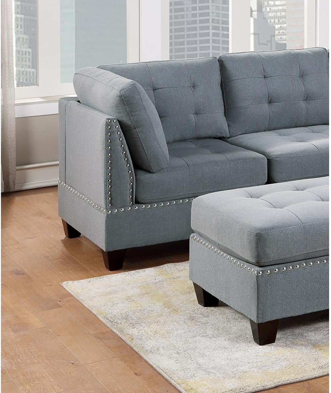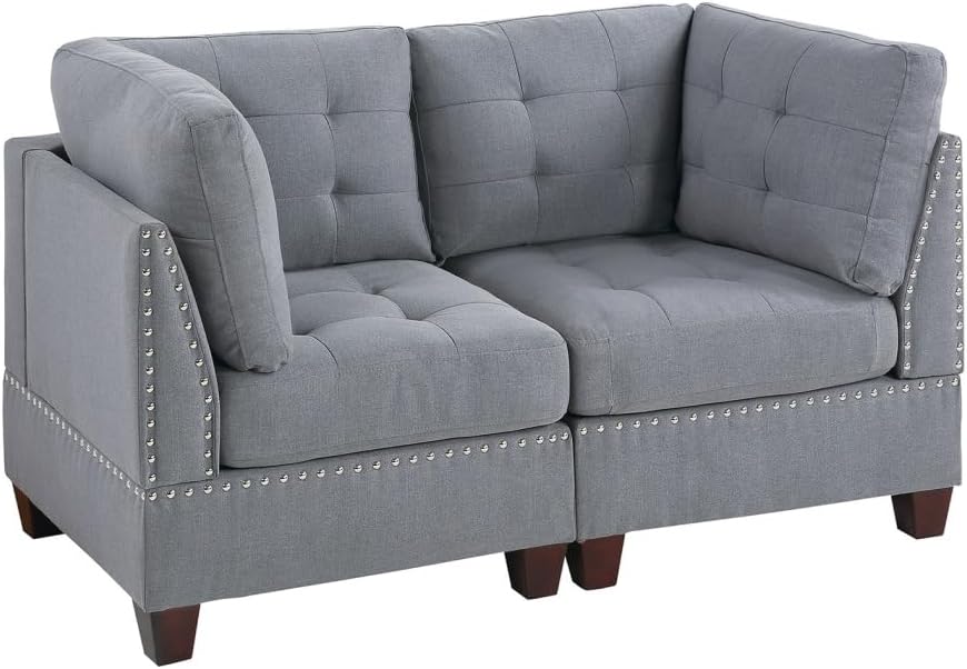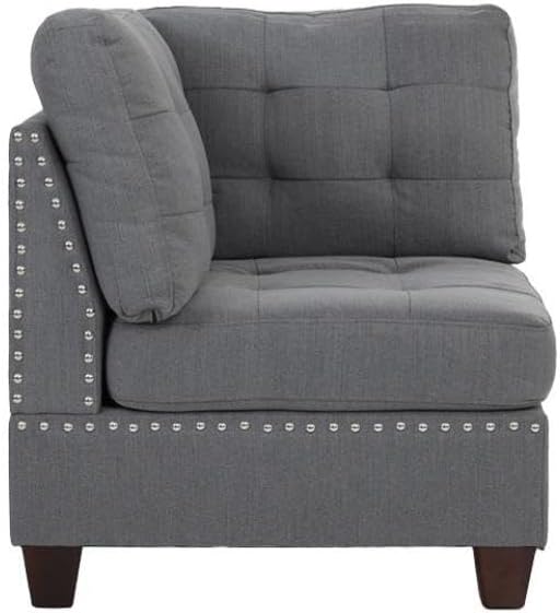 Living Room Furniture Tufted Corner Wedge Grey Linen Like Fabric 1pc Cushion Nail Heads Wedge Sofa Wooden Legs