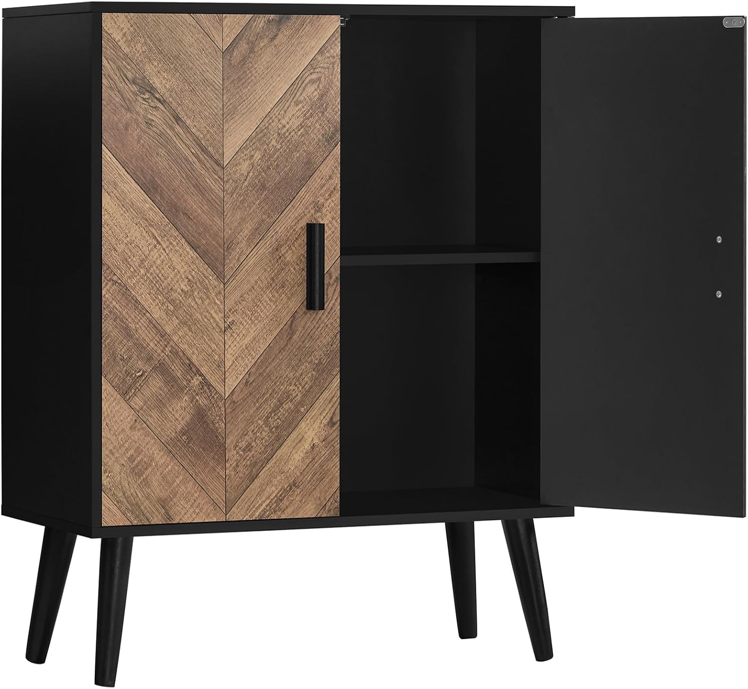 Iwell Tall Bathroom Cabinet & Boho Storage Cabinet, Storage Cabinet with 2 Drawers & Buffet Cabinet with Adjustable Shelf, for Living Room, Dining Room, Entryway, Black