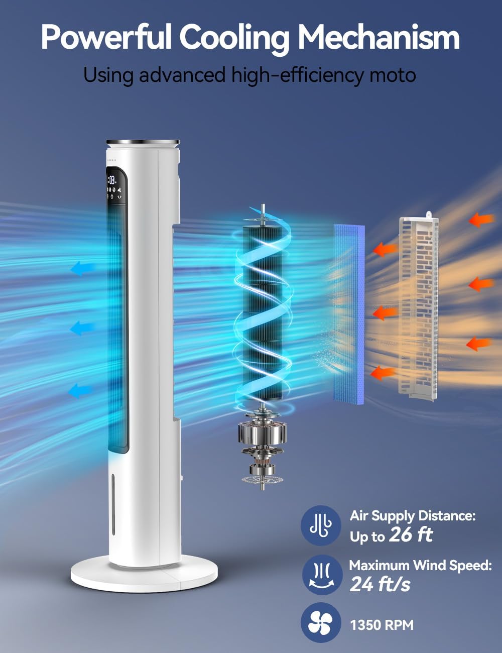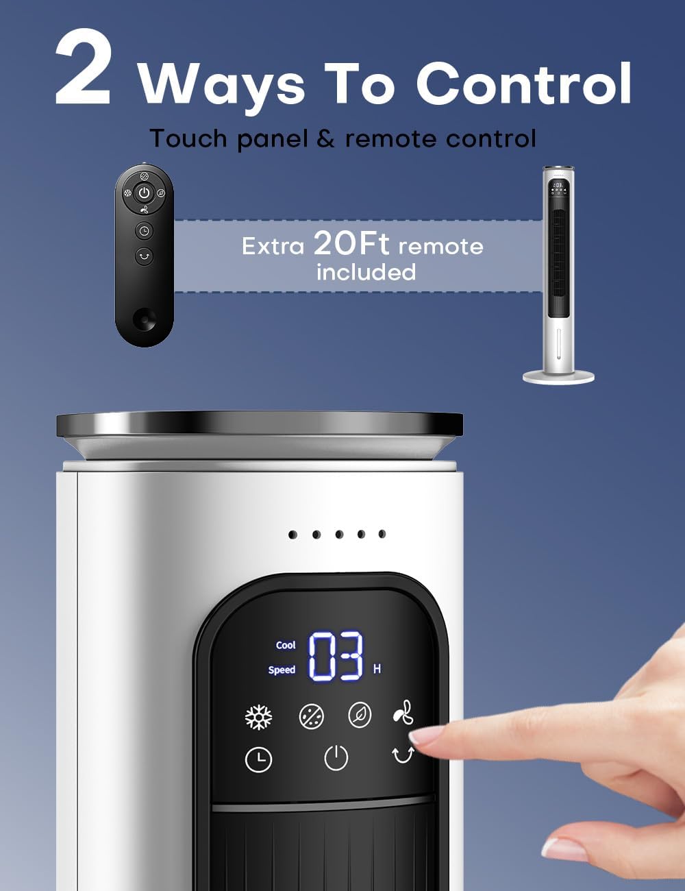 FANCOLE 37 INCH Evaporative Air Cooler w/LED Display, Touch Control & 20FT Remote, 3 Modes & 3 Speeds Swamp Cooler Air Conditioner, 12H Timer for Auto-off, 70° Wider Oscillating Air Cooler for Room