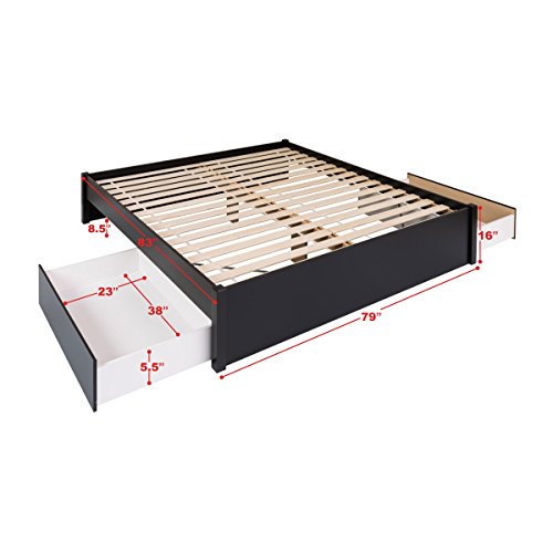 Prepac Select King 4-Post Raised Platform 2-Drawer Storage Bed, Modern King Storage Bed with Drawers 83" L x 79" W x 16" H, Drifted Gray, DBSK-1302-3K