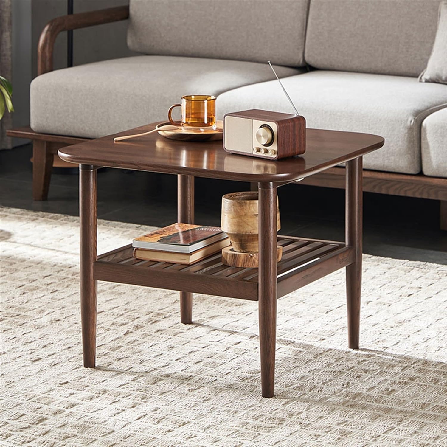 End Table Modern Wooden Coffee Table Double-Layer Square Sofa Corner Cabinet Living Room Bedroom Balcony Side Table Side Table