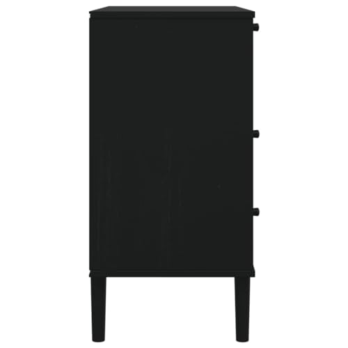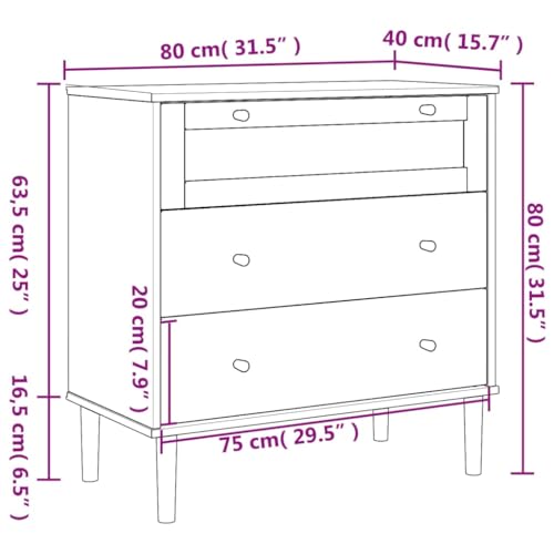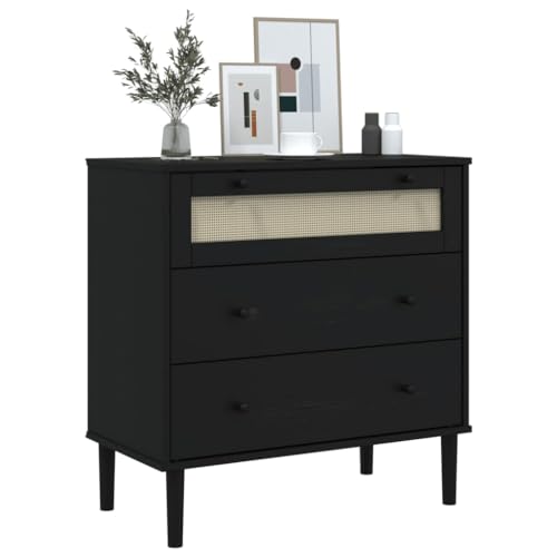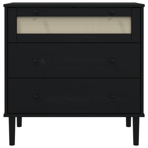 vidaXL Drawer Cabinet with Rattan Look, Three-Drawer Storage, Solid Pine Wood, UV Varnish Finish, Spacious, Midcentury Modern and Boho Design, White