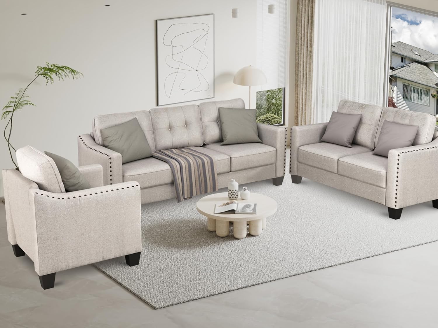 Furniture, 6 Seat Corner Velvet Sectional Couches with Soft Back Cushions and Strong Wooden Leg, 3-Pices Combination Sofa Set for Living Room/Apartment/Office, Warm Grey