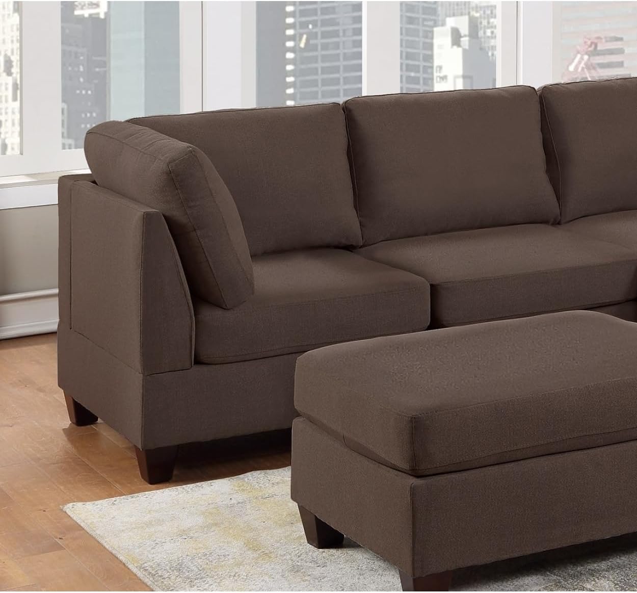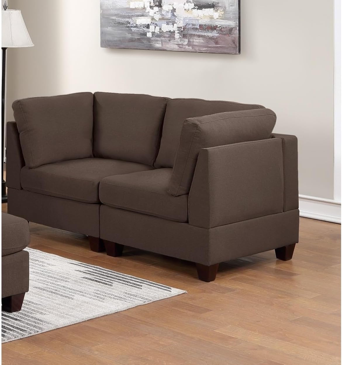 Living Room Furniture Corner Wedge Black Coffee Linen Like Fabric 1pc Cushion Wedge Sofa Wooden Legs
