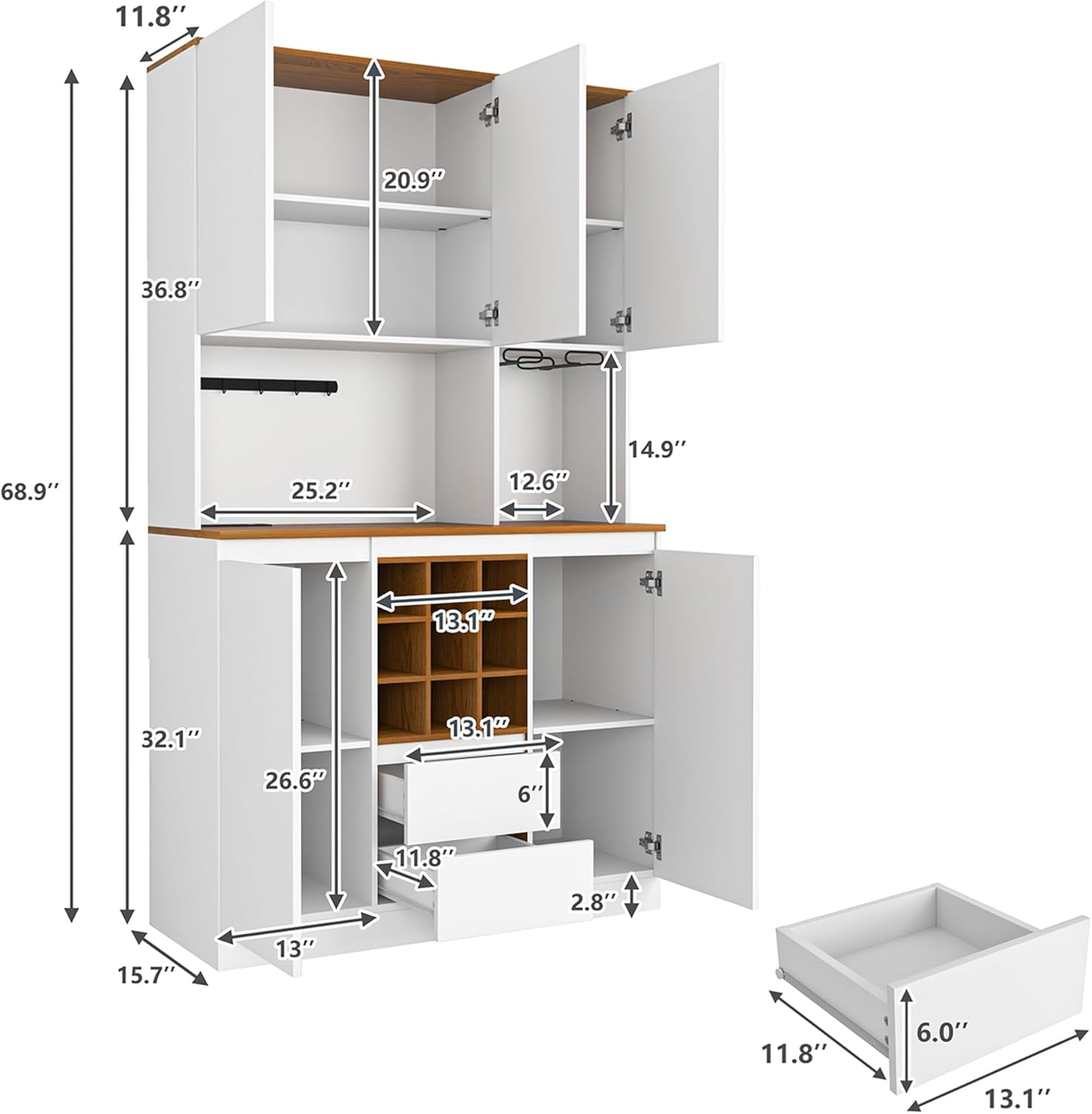 68.89'' Farmhouse Coffee Bar Wine Cabinet, Kitchen Buffet Cabinet with Storage, Liquor Cabinet, Wine & Glasses Rack for Kitchen, Dining Room