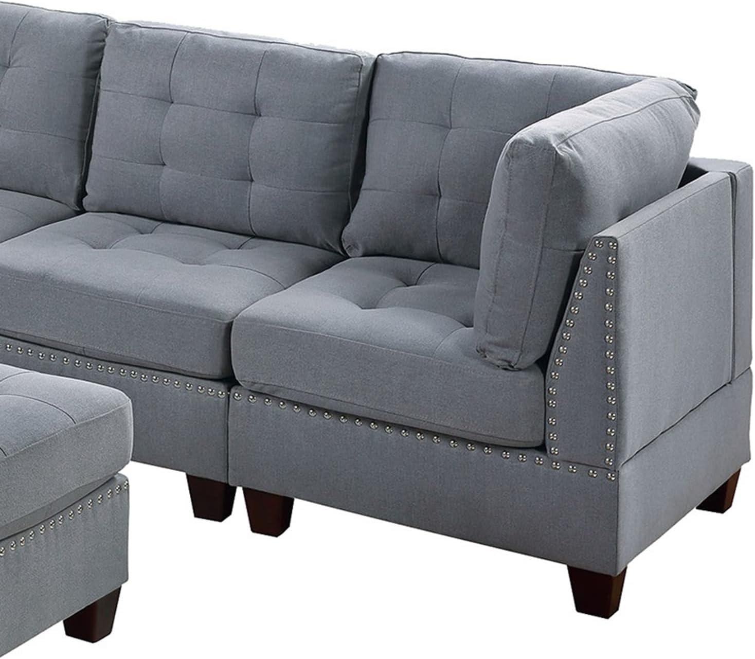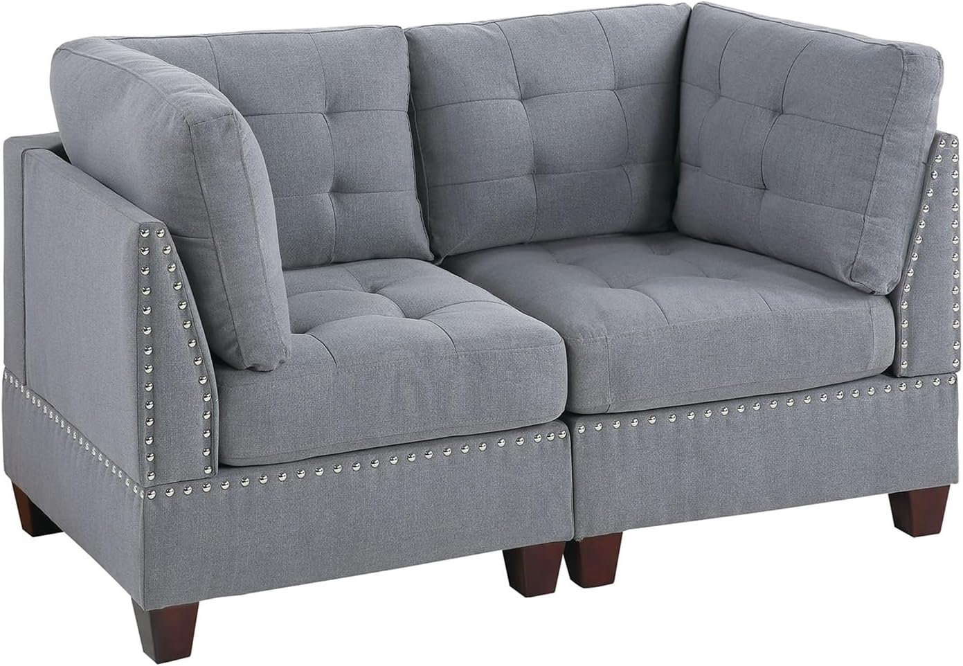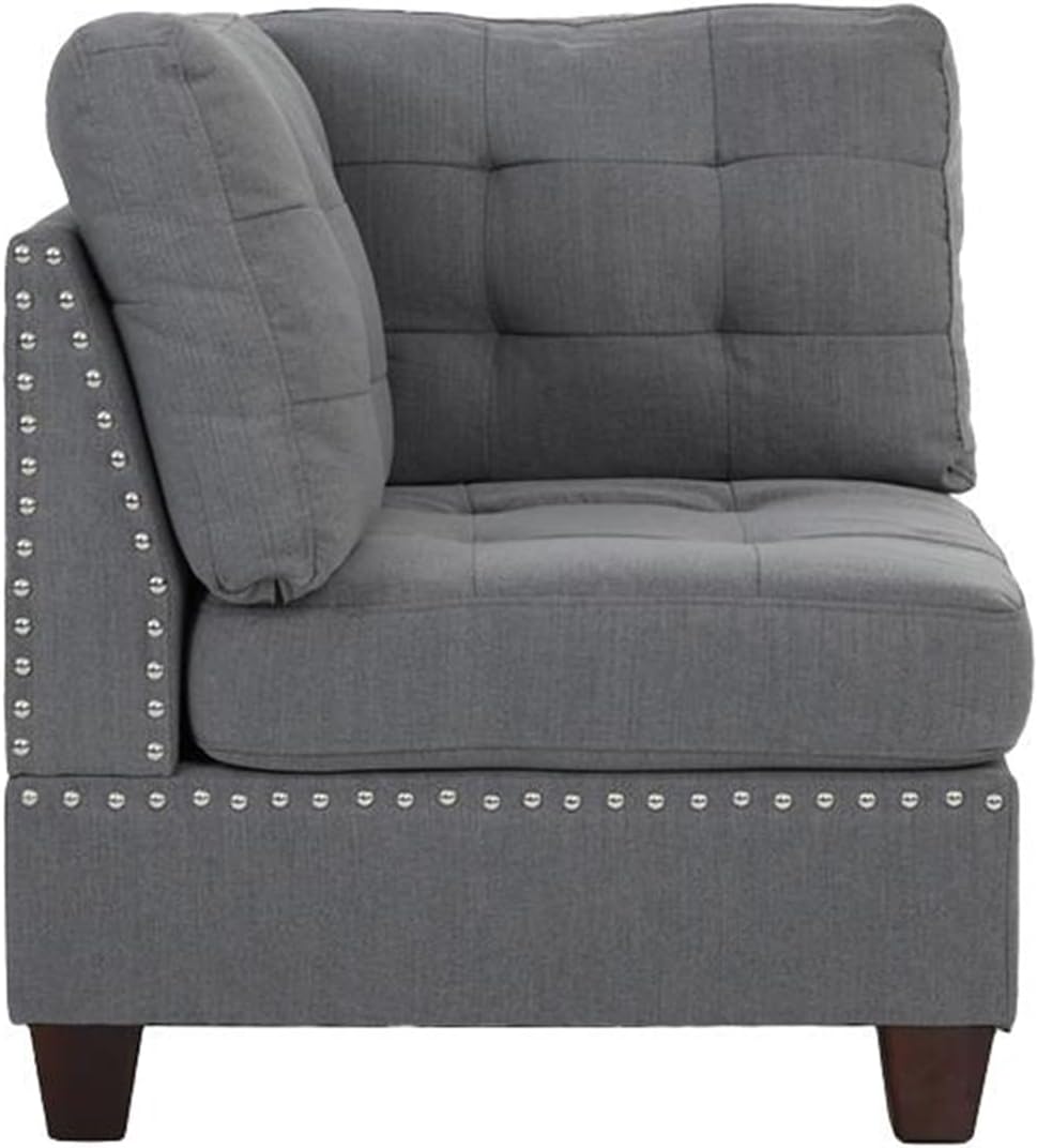 Tufted Corner Wedge Grey Linen 1Pcs Cushion Nailheads Wedge Sofa Wooden Legs