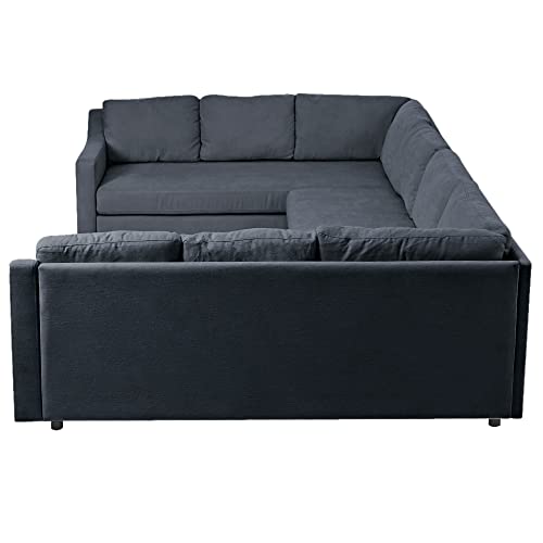 Modern 3-Piece Sectional Sofa Set Large U Shape Corner Sofa w/Overstuffed Seat&Back Cushion for Living Room Guestroom,Modular Fabric Upholstered Lounger Couch w/Wooden Frame&Plastic Legs for 8 (Grey)