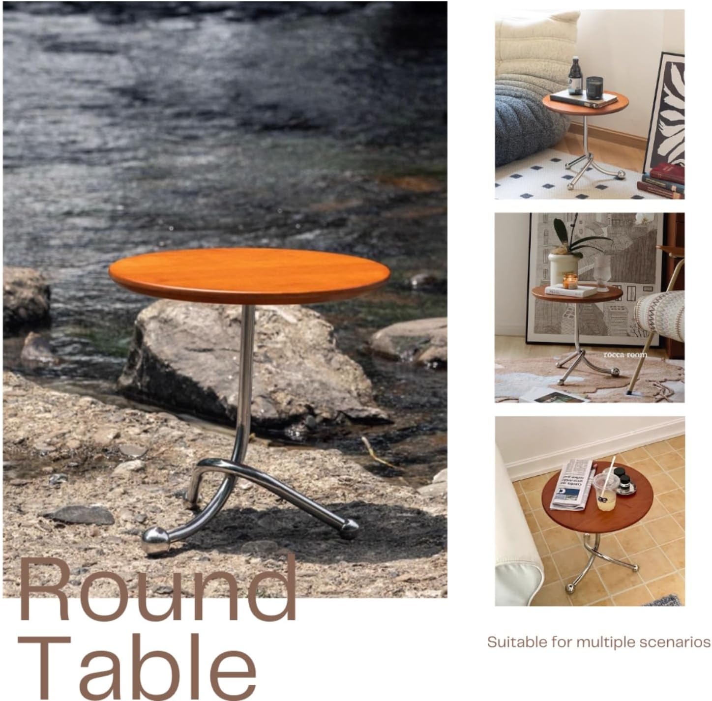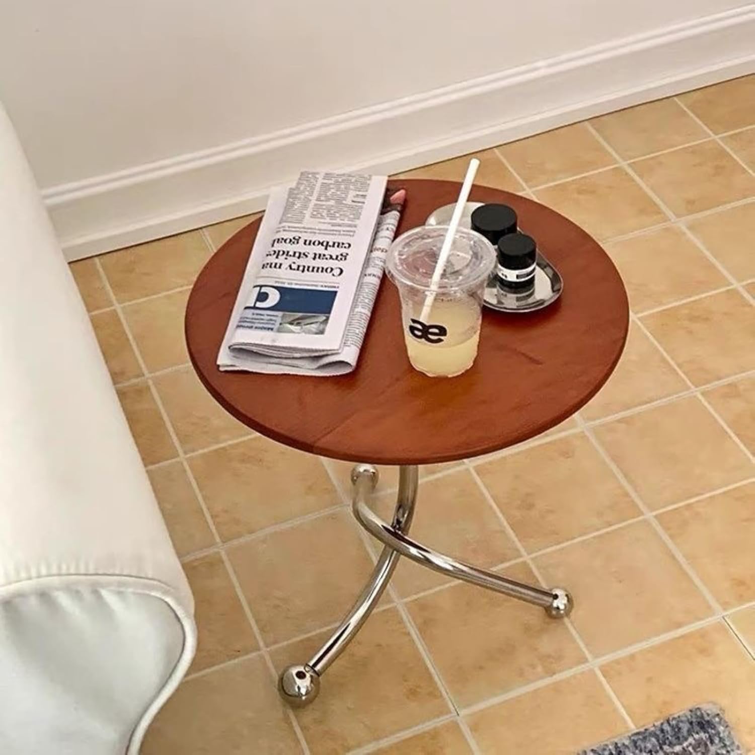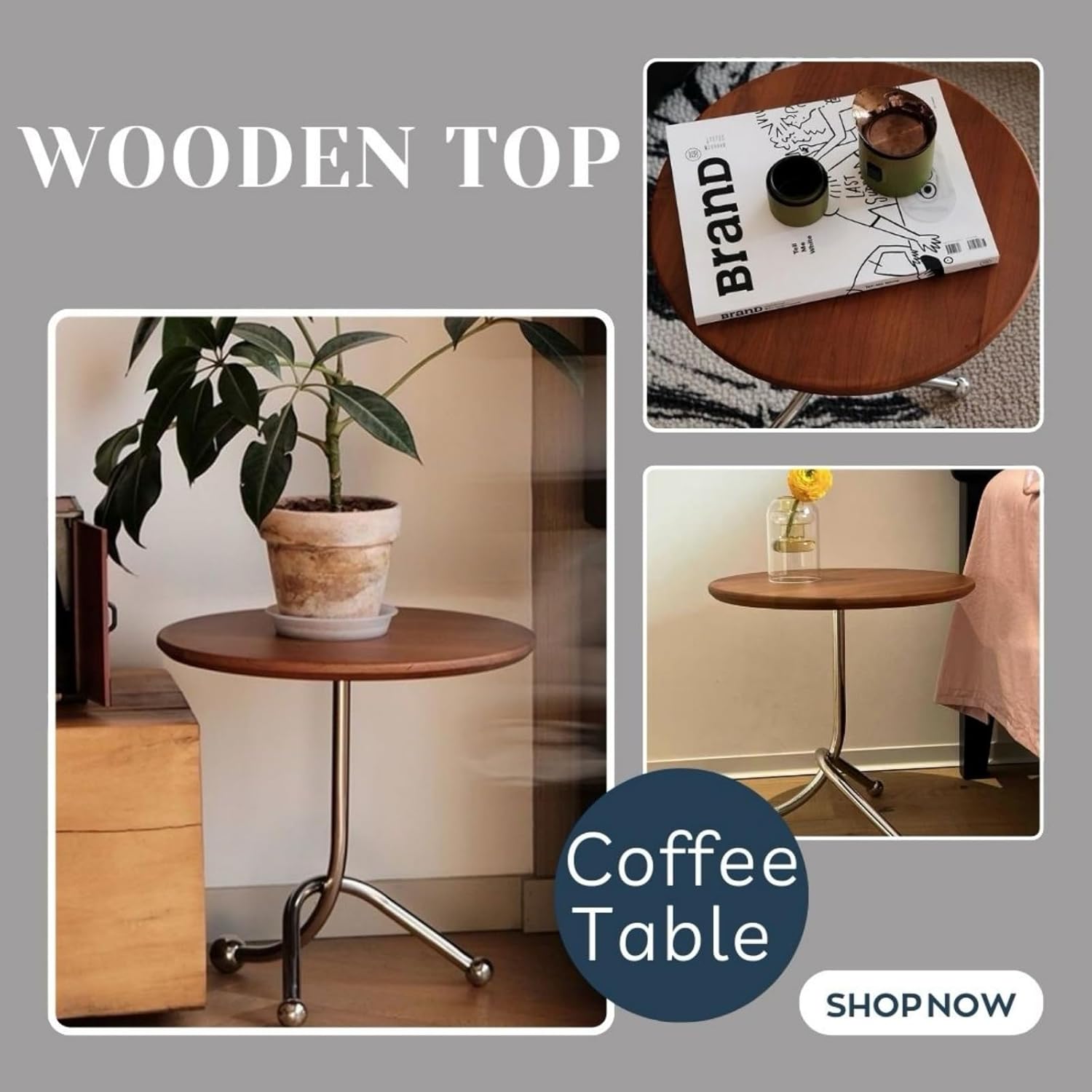 Coffee Side End Table with Solid Wooden Top, Round Coffee Table with Metal Leg ,Small Desk with Retro Style,Optimizing Mini Living Spaces Dining Table For Living Room,Bed Room ,Office,Sofa Corner.