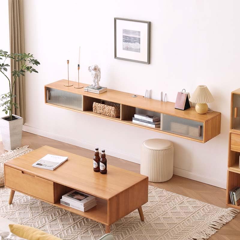 TV Floating Cabinet 59''/70'' Floating TV Console, Wall-Mounted TV Cabinet Floating TV Stand, Under TV Entertainment Shelf Media Console with Door and Storage for Living Room Home Office Floating TV S