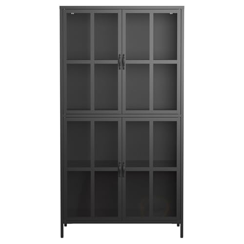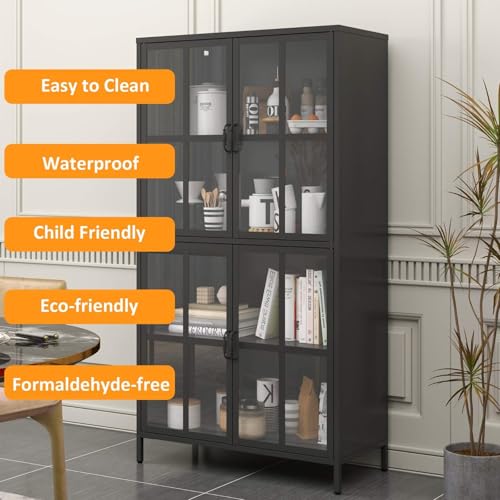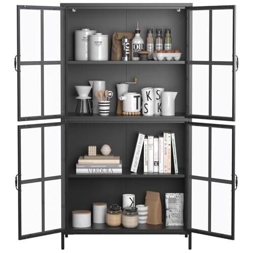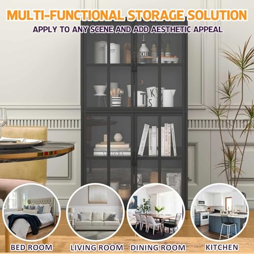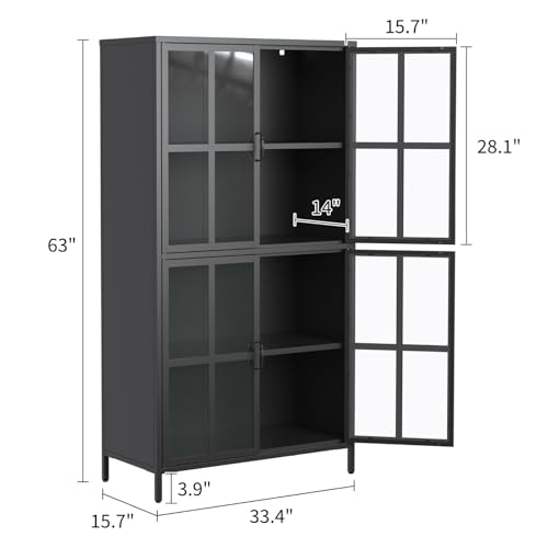 Metal Storage Cabinet with Glass Doors, 4-Shelf Display Cabinet, Adjustable Shelves, Anti-Tipping, 63" Tall, Versatile for Home Office, Kitchen, Living Room, White
