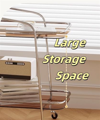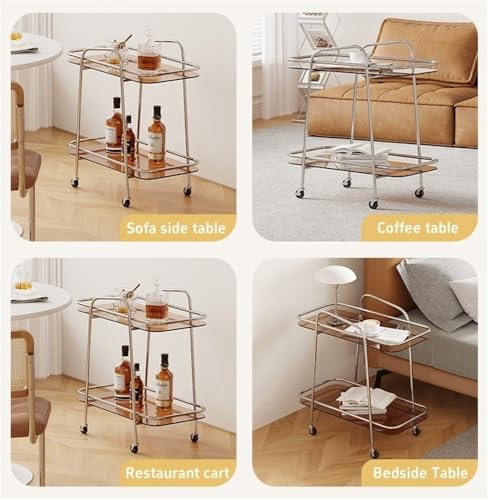 2-Tier Glass End Table with Wheels, Mobile Rolling Cart, Metal Frame and Tempered Glass Handcart, Home Bar Serving Carts for Home, Kitchen, Dining Room, Living Room Party(Gold)