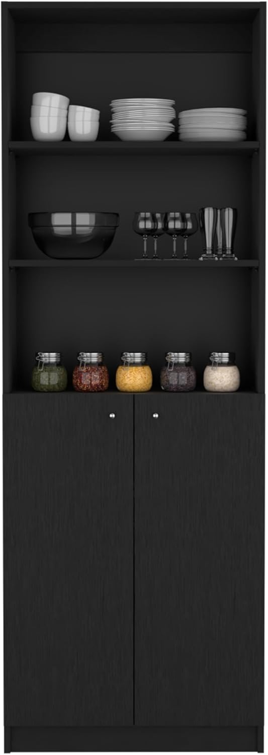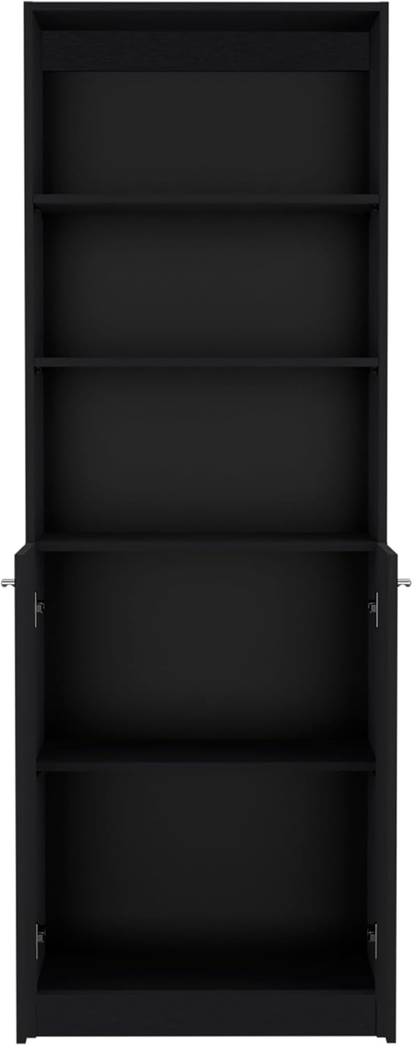 Vinton 2-Door Bookcase with Upper Shelves, Black