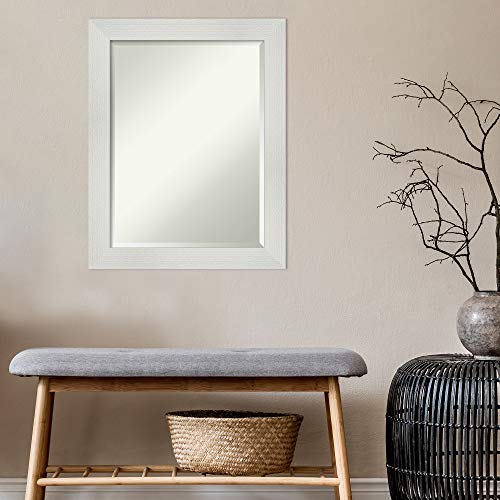 Amanti Art Bathroom Mirror, Rustic Plank White Narrow Wall Mirror for use as Bathroom Vanity Mirror Over Sink (33.5 x 43.5 in.) Beveled Mirror, White Mirror, Country Rustic Mirror from WI, USA