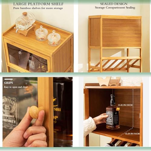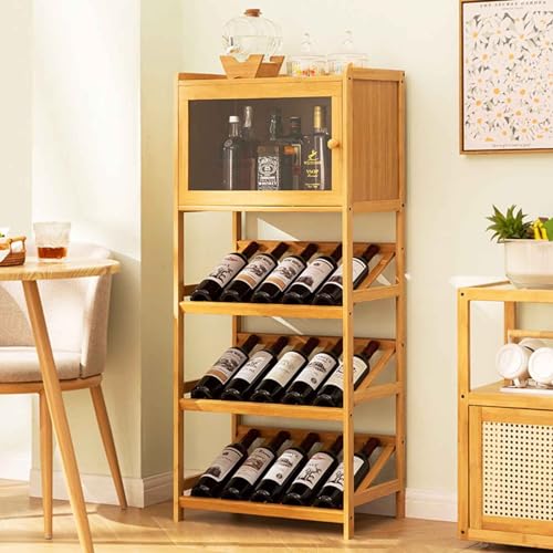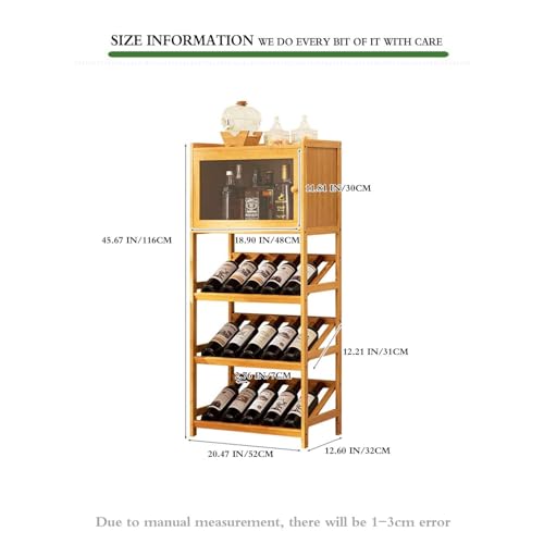 Wine Storage Cabinet Floor Standing Bottle Holder Stand with Storage Wooden Wine Bottle Holder Shelf 3 tier Freestanding Wine Rack with Upper Glass Cabinet Home Coffee Wine Bar Cabinet ( Color : Log ,