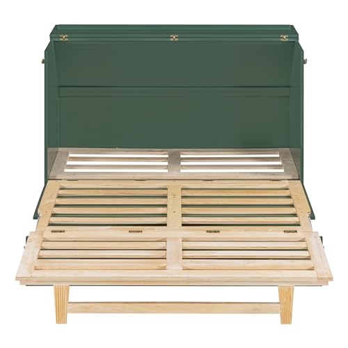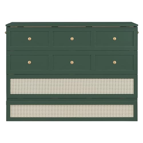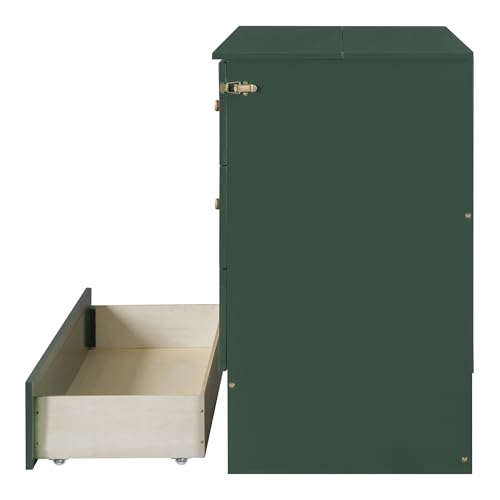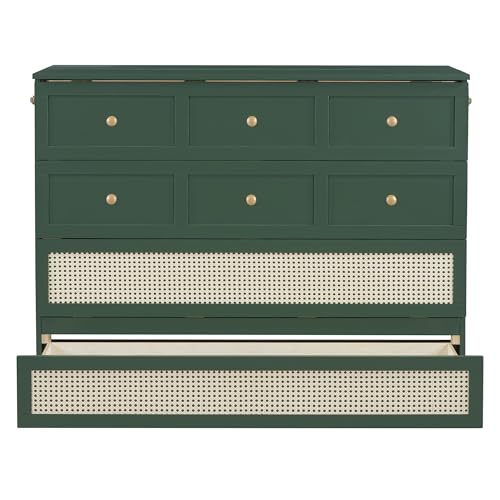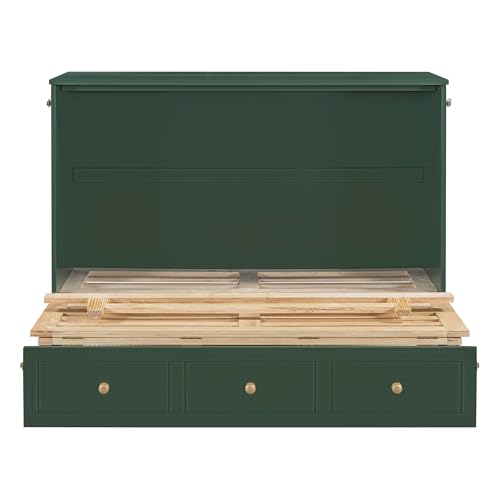 Full Size Murphy Bed with a Large Drawers, Solid Wood Mobile Murphy Chest Bed, Modern Platform Murphy Bed for Guest Room Home Office (Gray-RMF)