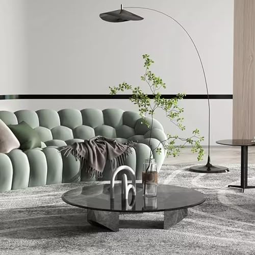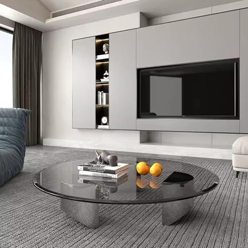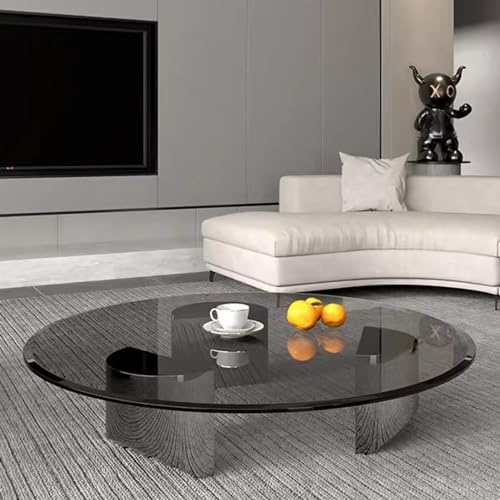 Round Clear Tempered Glass Coffee Table, Living Room Tea Sofa Table, Rounded Upper Bevel Design, Home Office, Stainless Steel Frame, Easy Assembly grey-80 * 36cm