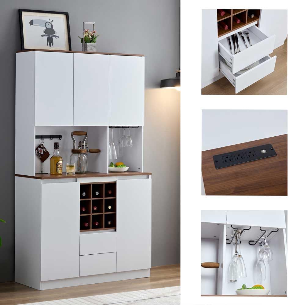 Farmhouse Coffee Bar Wine Cabinet,68.89'' Kitchen Buffet Cabinet with Storage, Liquor Cabinet for Home & Dining Room,White