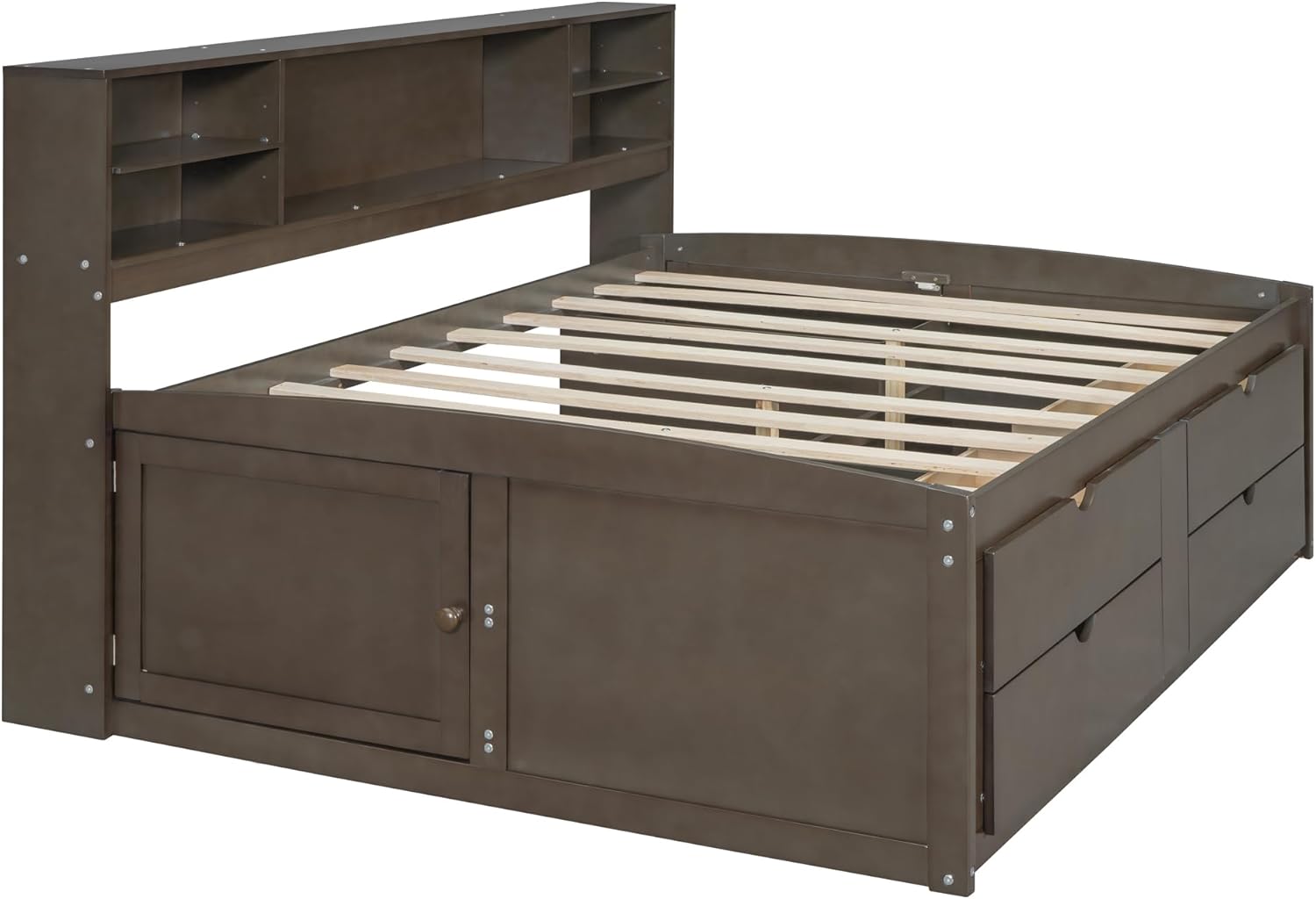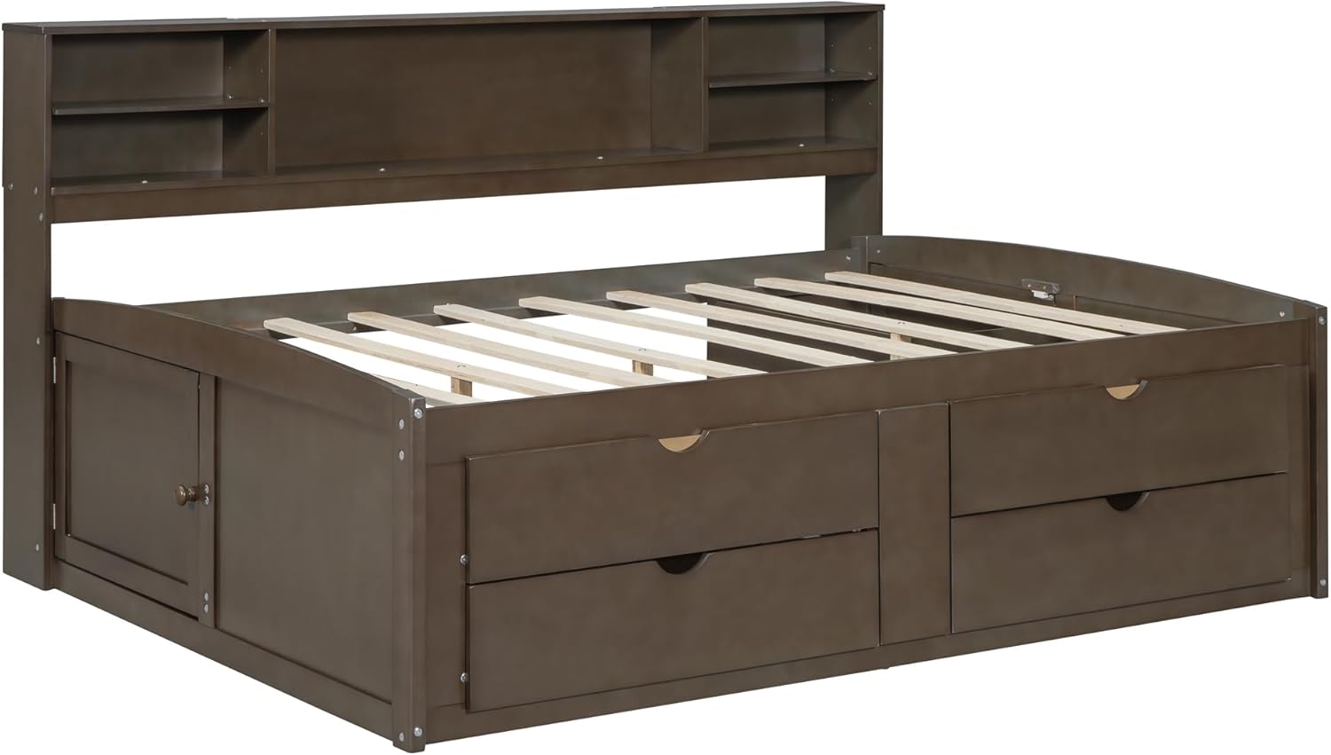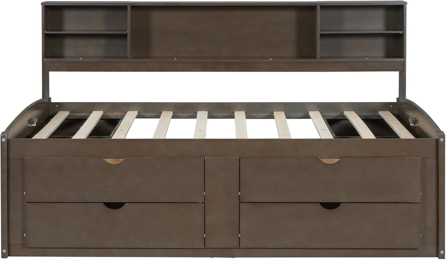Full Size Wood Daybed with 2 Bedside Cabinets, Upper Shelves and 4 Drawers, Antique Brown 77.8X 63.1x 43.3 inch(LxWxH)