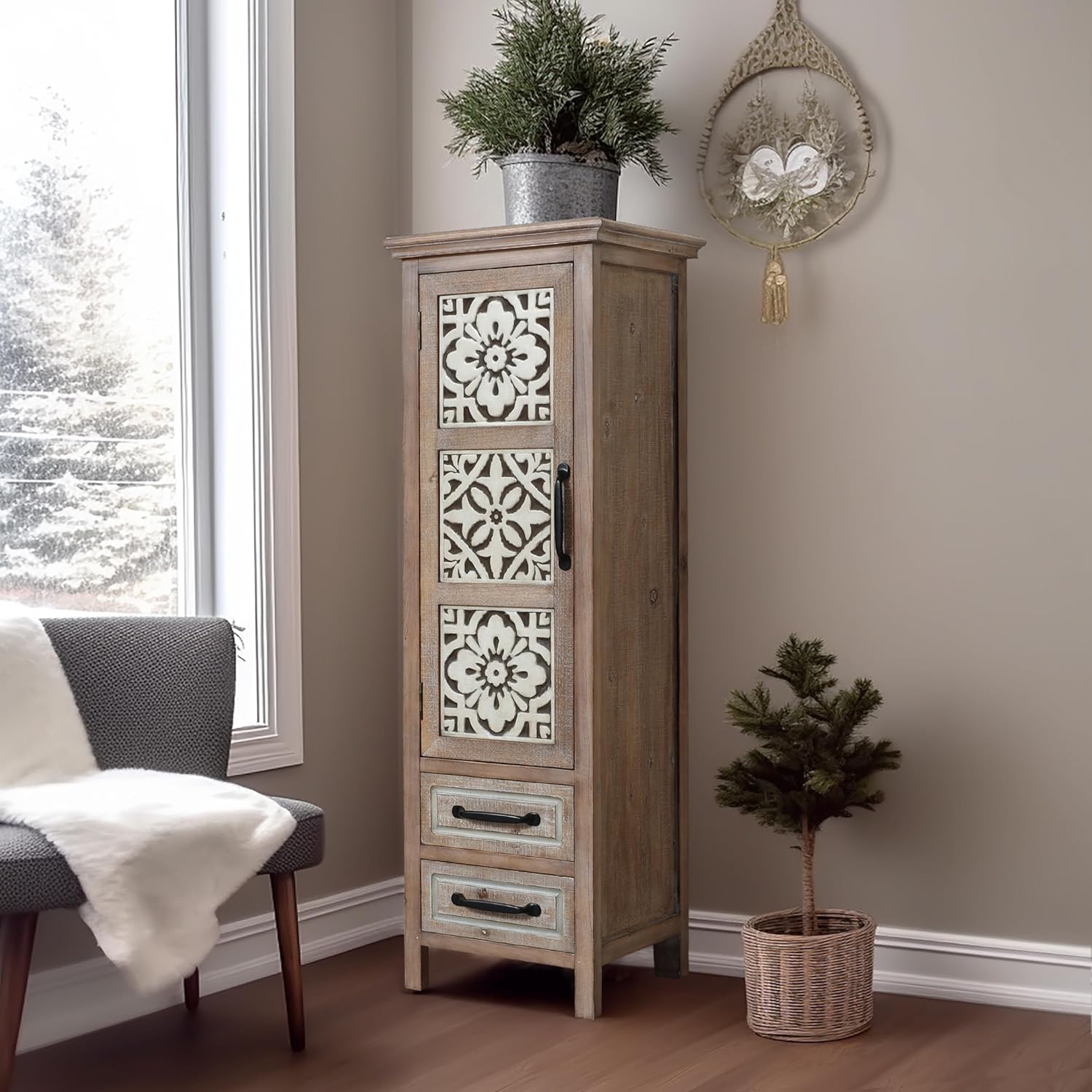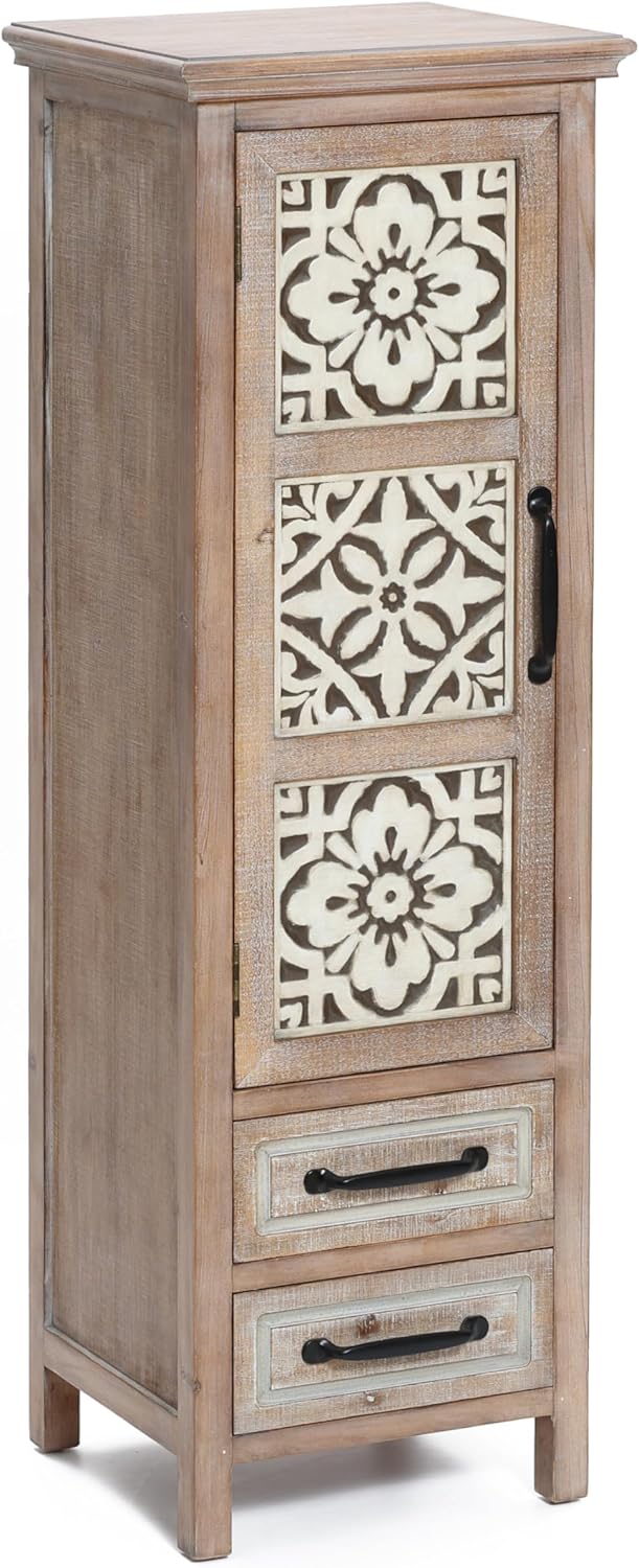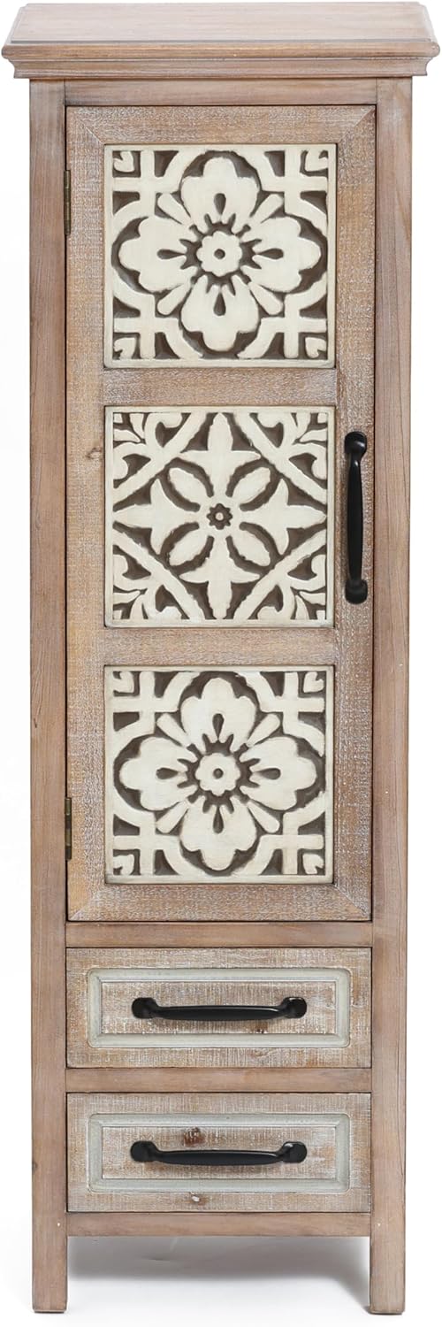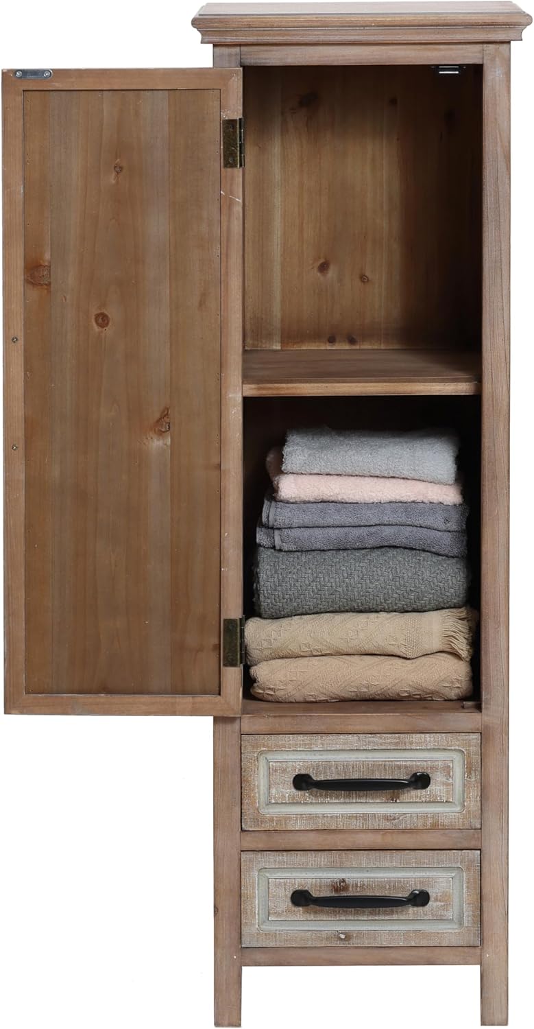 Luxenhome Farmhouse 48" Tower Wood 2-Drawer 1-Door Storage Cabinet, Home Furniture for Ling Room Bedroom