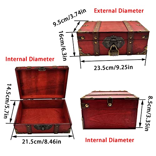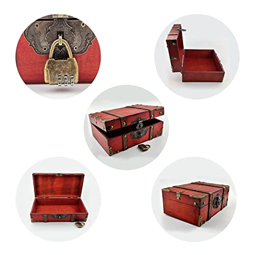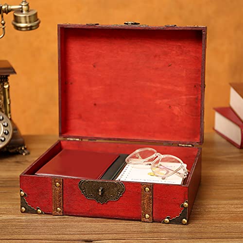 Flylin Vintage Wooden Storage Box With Lock, Treasure Jewelry Chest Decorative Treasure Jewelry Chest Wooden Storage and Decorative Box Home Decoration Jewelry Storing Storage Organizer (Grey)