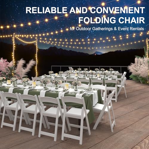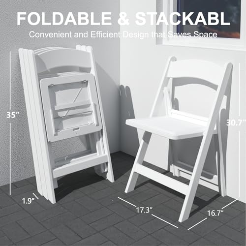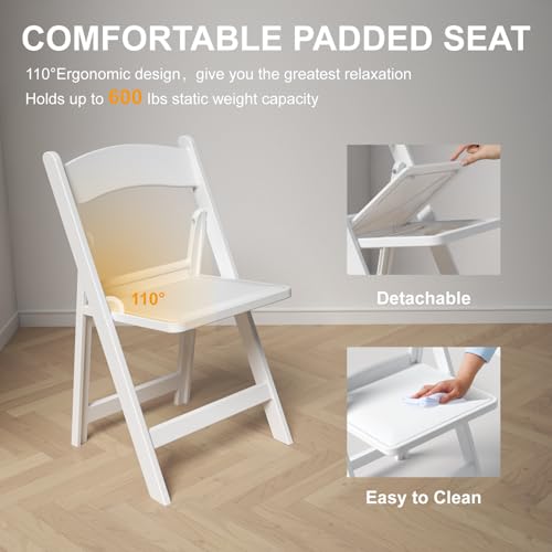 4 Pack Folding Chairs, Resin Chairs with Padded Seat, White Folding Chairs for Outside, Comfortable Event Chair Indoor Outdoor for Home Event Party Picnic School Wedding, 600lbs Capacity