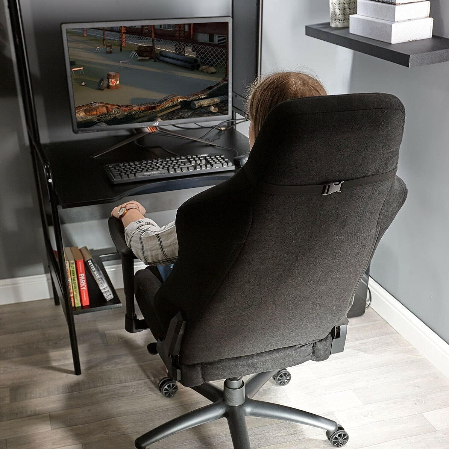 Zero Gravity Ergonomics High Back Chair, Steel Feet Bow Assembly Staff Chair PU Leather Computer Home Office Desk Chair
