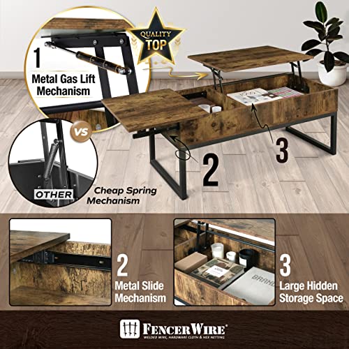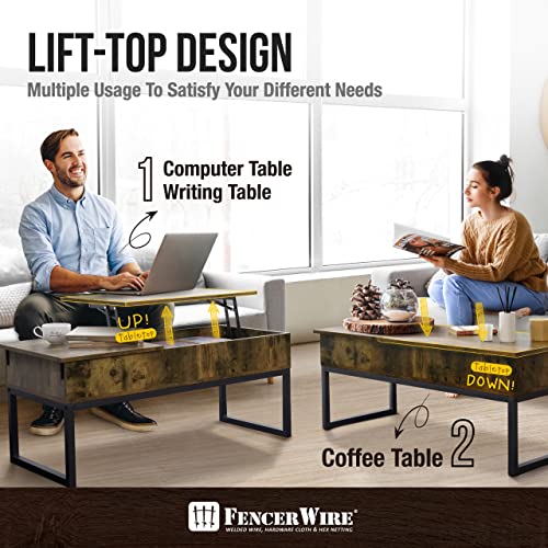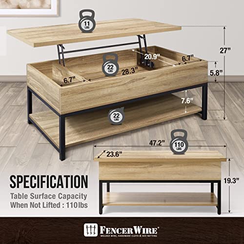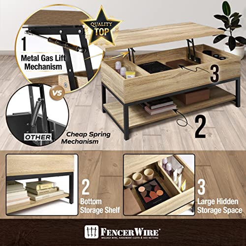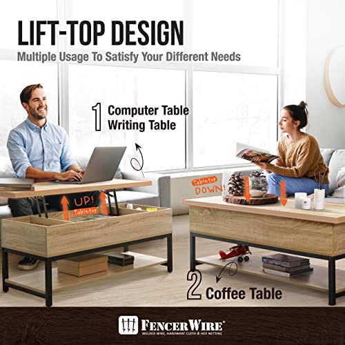 Fencer Wire Lift Top Coffee Table w/Storage, Coffee Table w/Bottom Open Shelf, Storage Coffee Table w/Lift Top for Living Room, Rising Top Coffee Table w/Hidden Compartment Storage, 41" Natural Oak