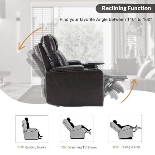 PU Power Recliner Chair with USB Charging Port Hidden Arm Storage 2 Convenient Cup Holders and 360° Swivel Tray Table Zero Gravity Chairs (Black)