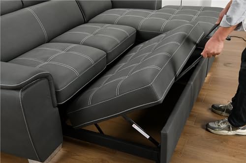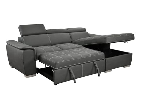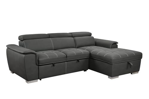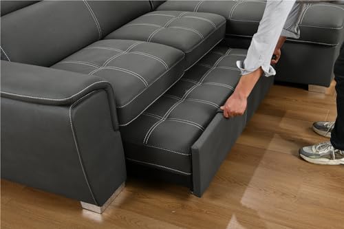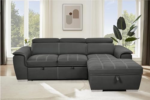 Convertible Sectional Sofa with Pull-Out Bed, L-Shaped Couch with Storage Chaise and Adjustable Headrest, Modern Upholstered Corner Sleeper Sofa for Living Room, Sturdy Wooden Frame (Brown)