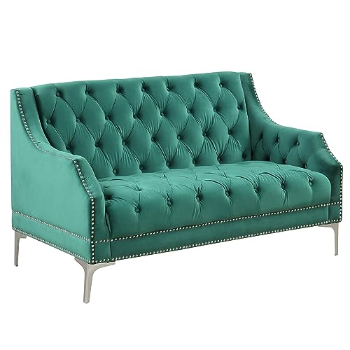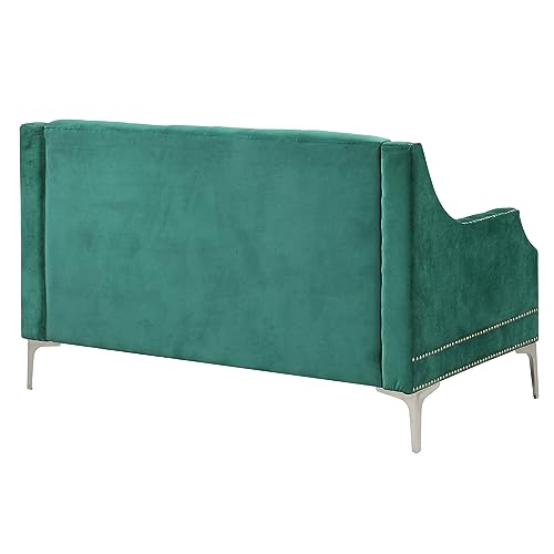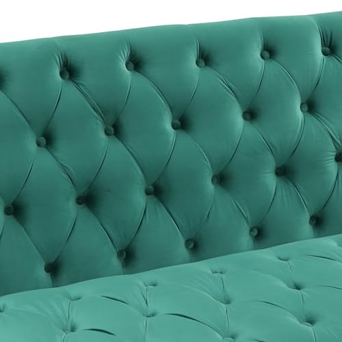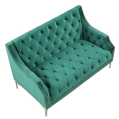 Modern Button Tufted Loveseat Sofa Stylish Corner Sofa Couch w/Armrest &Rivets Trim for Living Room,Luxury Velvet Upholstered Sofa Chair Ottoman Bench w/Wooden Frame&Metal Legs for Small Space (Green)