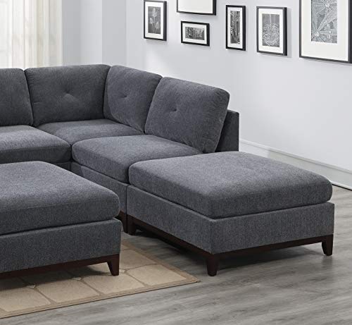 Living Room Furniture Tufted Corner Wedge Grey Linen Like Fabric 1pc Cushion Nail heads Wedge Sofa Wooden Legs