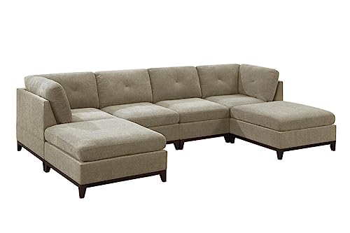 134 Inch Modern U Shaped Sectional Sofa Set, Oversized Modular Comfy Chenille Corner Tufted Couch with Ottomans, 6 Seat Sofá, Wooden Base, for Living Room, 134", Camel-d