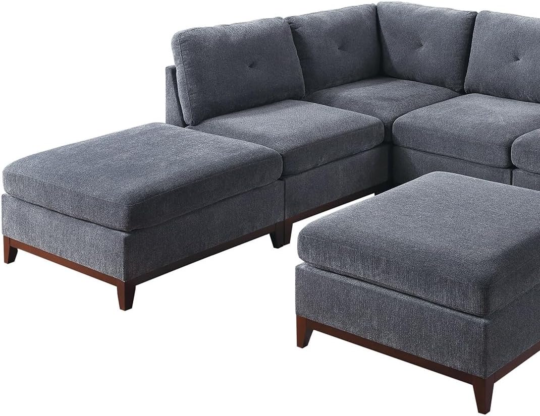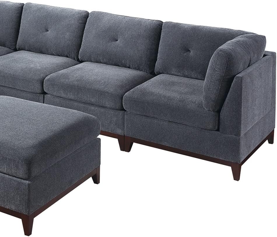 134" Oversized Modern U-Shaped Sofa Set, Modular Chenille Corner Tufted Couch, Includes Ottomans, 7-Seat Sofá on a Wooden Base, Perfect for The Living Room, Gun Ash-E