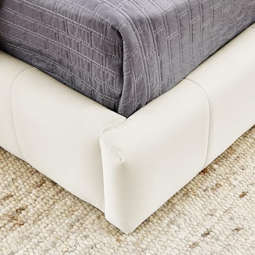Full Size Upholstered Floor Bed Frame,with Comfortable Backrest and Armrests Sofa Bed Frame,Velvet Platform Bed for Bedroom, Living Room, Recreation Room, No Box Spring Needed (Grey, Full)
