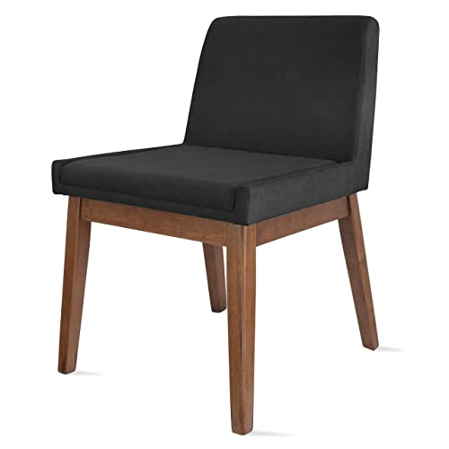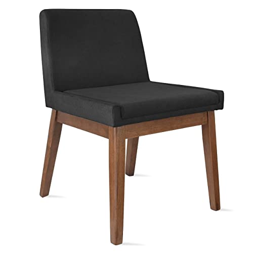 2xhome Modern Dining Room Lounge Chair with Upholstered Foam Padded Soft Fabric Cushion Low Short Back and Brown Walnut Wooden Leg Frame (Gray) 1 Piece
