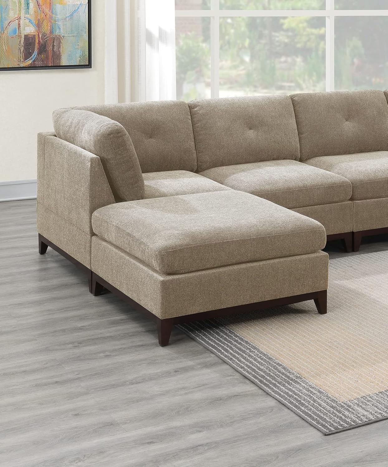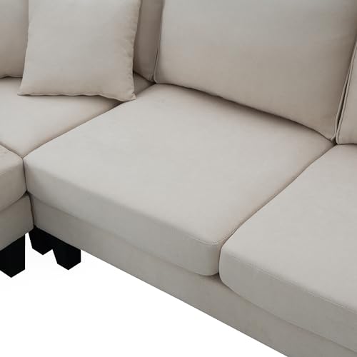134" Oversized Modern L-Shaped Sofa Set, Modular Chenille Corner Tufted Couch, Includes Ottomans, 7-Seat Sofá on a Wooden Base, Perfect for The Living Room, Camel-E