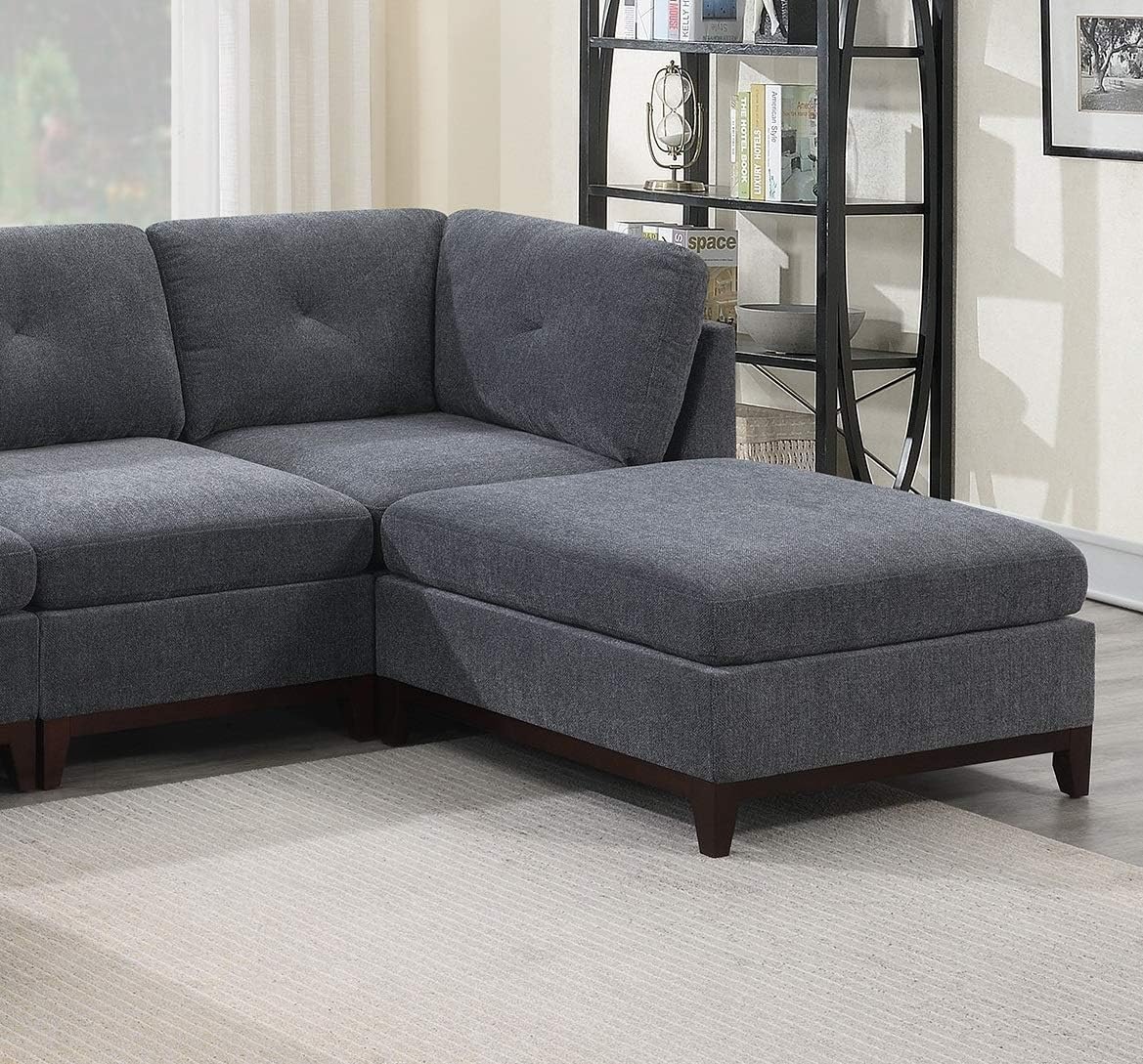 Living Room Furniture Tufted Corner Wedge Black Coffee Linen Like Fabric 1pc Cushion Nail heads Wedge Sofa Wooden Legs