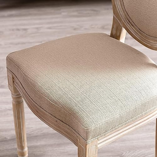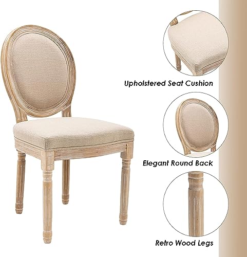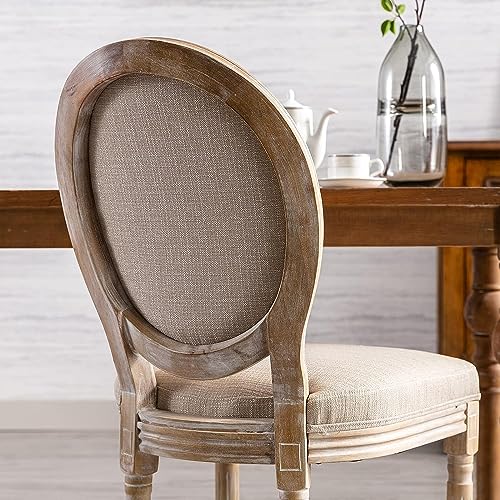 Guyou Upholstered Dining Chairs Driftwood Set of 6, Antique Dining Room Chairs French Country Vintage Accent Chairs Round Fabric Back with Distressed Wood for Kitchen Living Room (Grey)