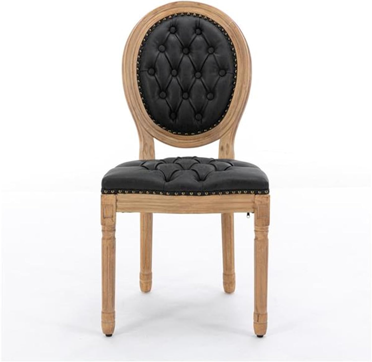 French Solid Wood Frame Antique Painting, Hand-Pull Buckle Decoration PU Imitation Leather Dining Chair, Banquet Chair with Nail Head Trim, Wooden Legs, high Back, 2-Piece Set, Black