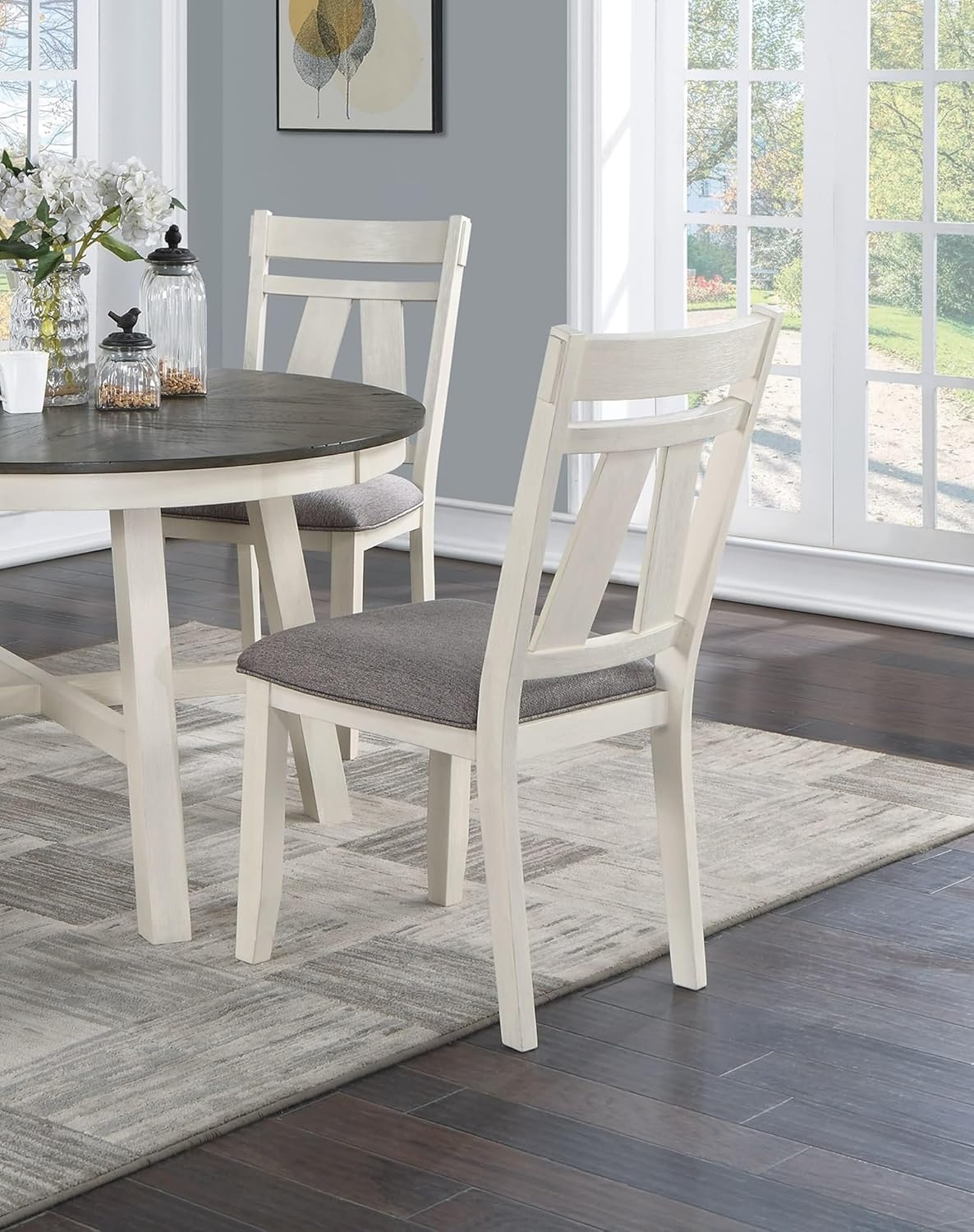 Farmhouse Style Antique White Color Dining Chairs Set of 2 Size: 22 in. D X 22 in. L X 22 in. W X 47 in. H, Wood Material | All Season Pretty Ivory Shade, Armless Decorative Back, Durable and Sturdy