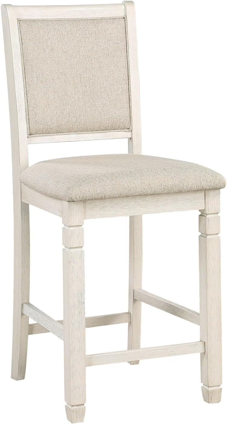 Antique White Finish Wooden Counter Height Chairs 2Pcs Set Textured Fabric Upholstered Dining Chairs