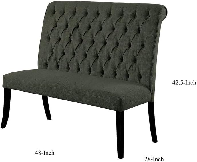 Antique Accent Modern Chair Tufted Fabric Upholstered Wooden Love Seat Bench Living Room Chairs, Gray and Black, 28" D x 48" W x 43" H