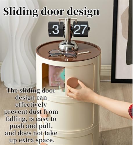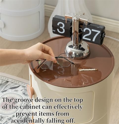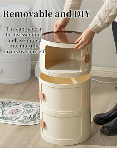 Round Nightstand with Drawers, Removable & Stackable Tiers, ABS Plastic, Space-Saving Design - Versatile Bedside Table(Brown,12.6 * 12.6 * 29.9in)