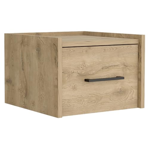 Grey Wall-Mounted Floating Nightstand, Compact, Single Drawer with Handle, Space-Saving, 13.8 in W x 13.2 in D x 9.8 in H