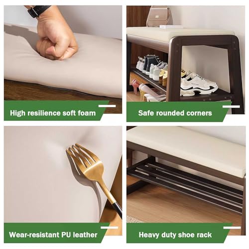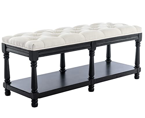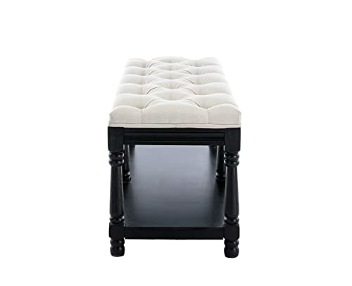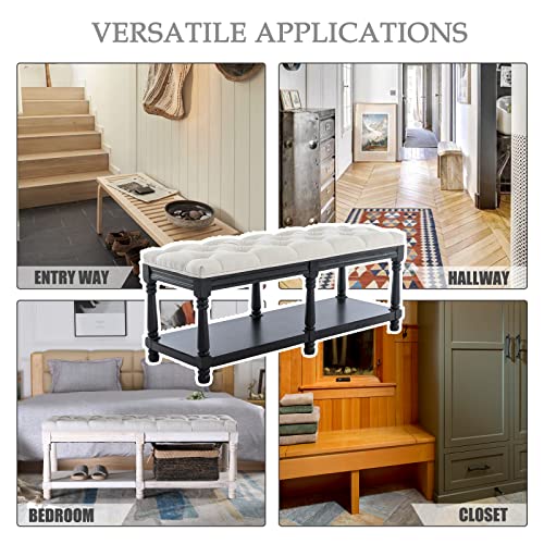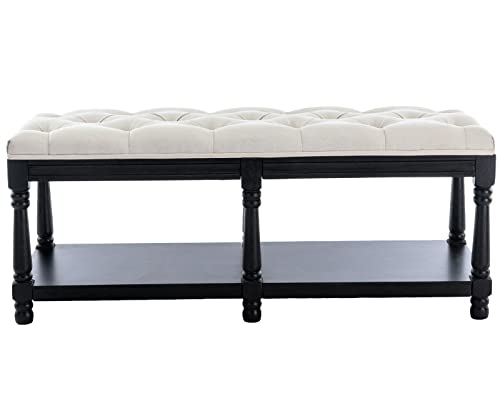 Kmax Storage Entryway Bench Tufted Shoe Rack Bench Wood Window Bench for Hallway Entrance Bedroom Corner, Beige
