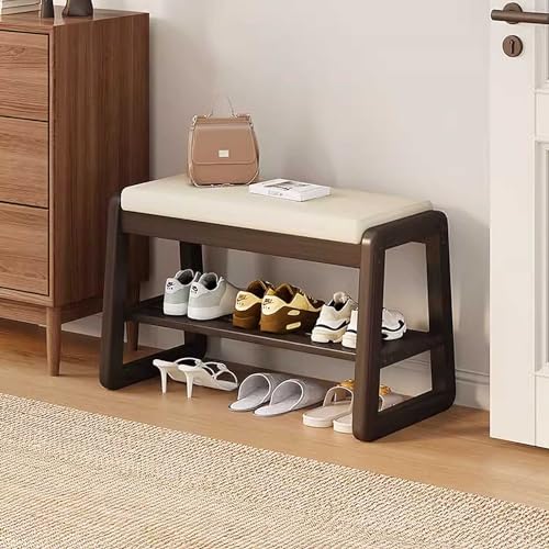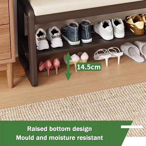 Shoe Bench Entryway, Nature Bamboo Shoe Rack with Seat Narrow Hallway Bench for Living Room 2 Layers Benches with Storage
