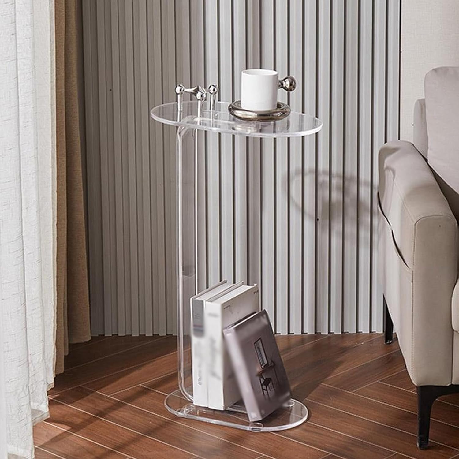 End Table Oval End Table High Clear Acrylic Coffee Table Round Bedside Table Small Modern Side Tables Home Furniture Center Table Space-Saving