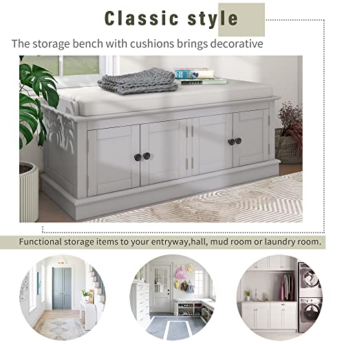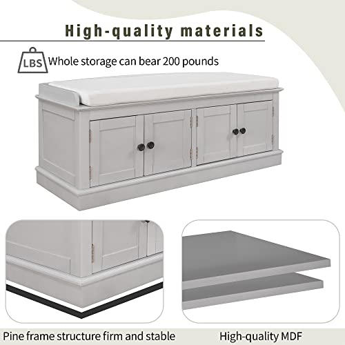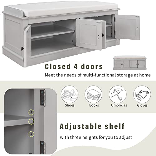 Storage Bench, Entryway Bench with 4 Doors and Adjustable Shelves, Shoe Bench Shoe Cabinet Storage Ottoman with Removable Seat Cushion for Living Room Entryway Hallway (Antique Navy)