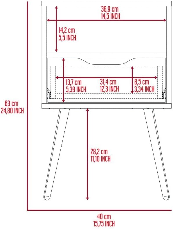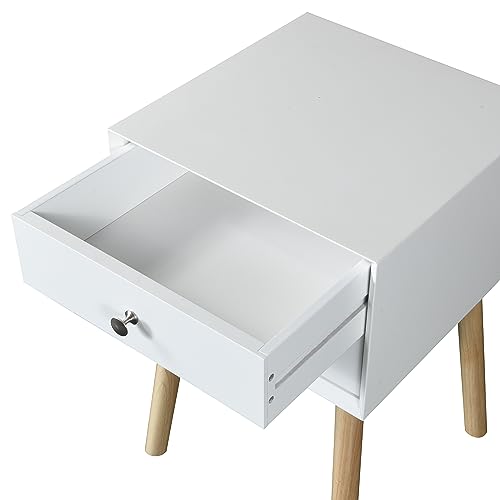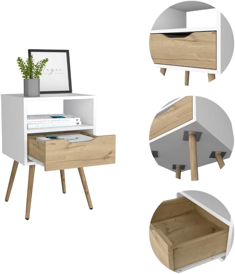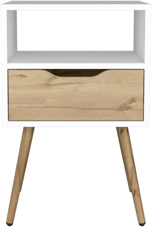 Otom Nightstand, Superior Top, White/Light Oak, 15.8 x 13.8 x 24.8 Inches, One Open Shelf & Drawer, Durable Metal Legs, Space-Saving