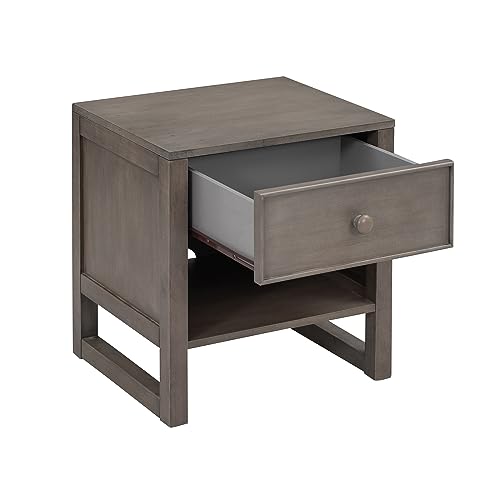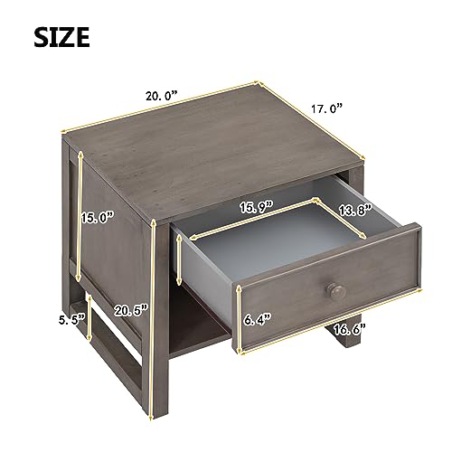 Modern and Stylish Bedside Table with Ample Storage Space - MDF Construction, Rubberwood Legs, Maximum Load Capacity of 50 lbs,Perfect for Saving Space,Gray